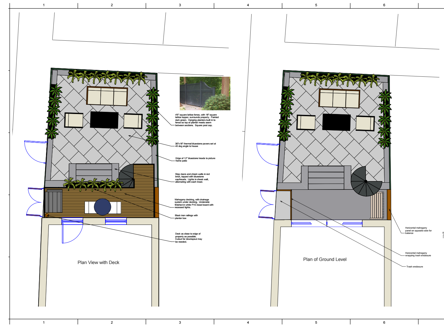 Working with a landscape designer in our neighborhood, Andrea Nilsen, we formalized the plan (read: we told her all of the features we'd like, and she made it into something that's actually feasible and legal to build, not to mention pretty). She created these drawings: